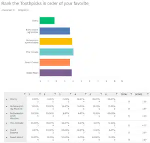 At the end Focus Group Questionnaire respondents were asked to rank the flavors in their most favorite to least favorite. They are presented in order of preference.